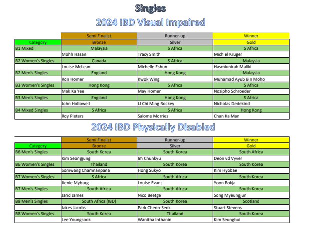 B4 Mixed Singles – Roy Pieters (VIBSA Substitute) – Visually Impaired